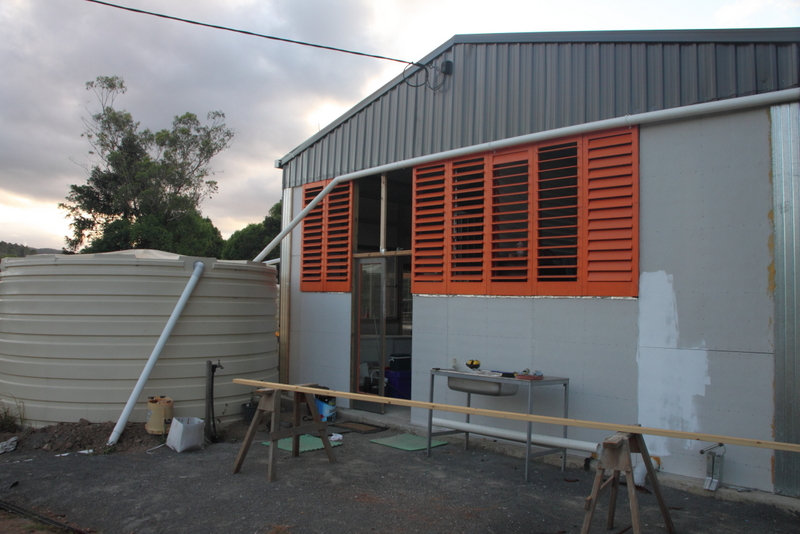 The shed that we used to live in has changed. It is now fully insulated and lined with internal walls to create three bedrooms and a study, lots of lights and nice white paint. There are now more windows to let in light. A sky light is waiting its time to go in to assist in providing light, particularly during the winter. That shed has its own shed that incorporates a shipping container for lockable storage.